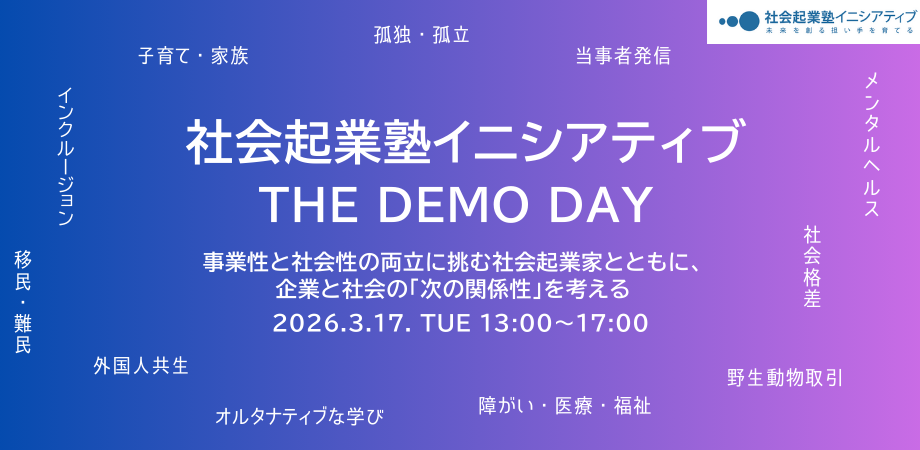 【3/17(火)開催】 2025年度 社会起業塾イニシアティブ DEMO DAY 〜事業性と社会性の両立に挑む社会起業家と... 【3/17(火)開催】2025年度 社会起業塾イニシアティブ DEMO DAY事業性と社会性の両立に挑む社会起業家とともに、企業と社会の「次の関係性」を考える 主催:NPO法人ET... po...